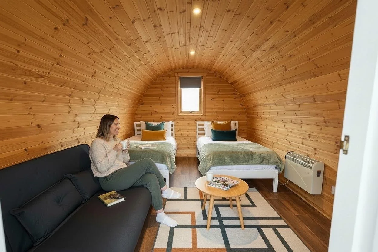 Our three Classic Pods, Strathisla, Glenfiddich and Glen Moray, offer a thoughtfully designed and comfortable retreat, with the flexibility of twin or double beds alongside a sofa bed, accommodating up to two adults and two children.